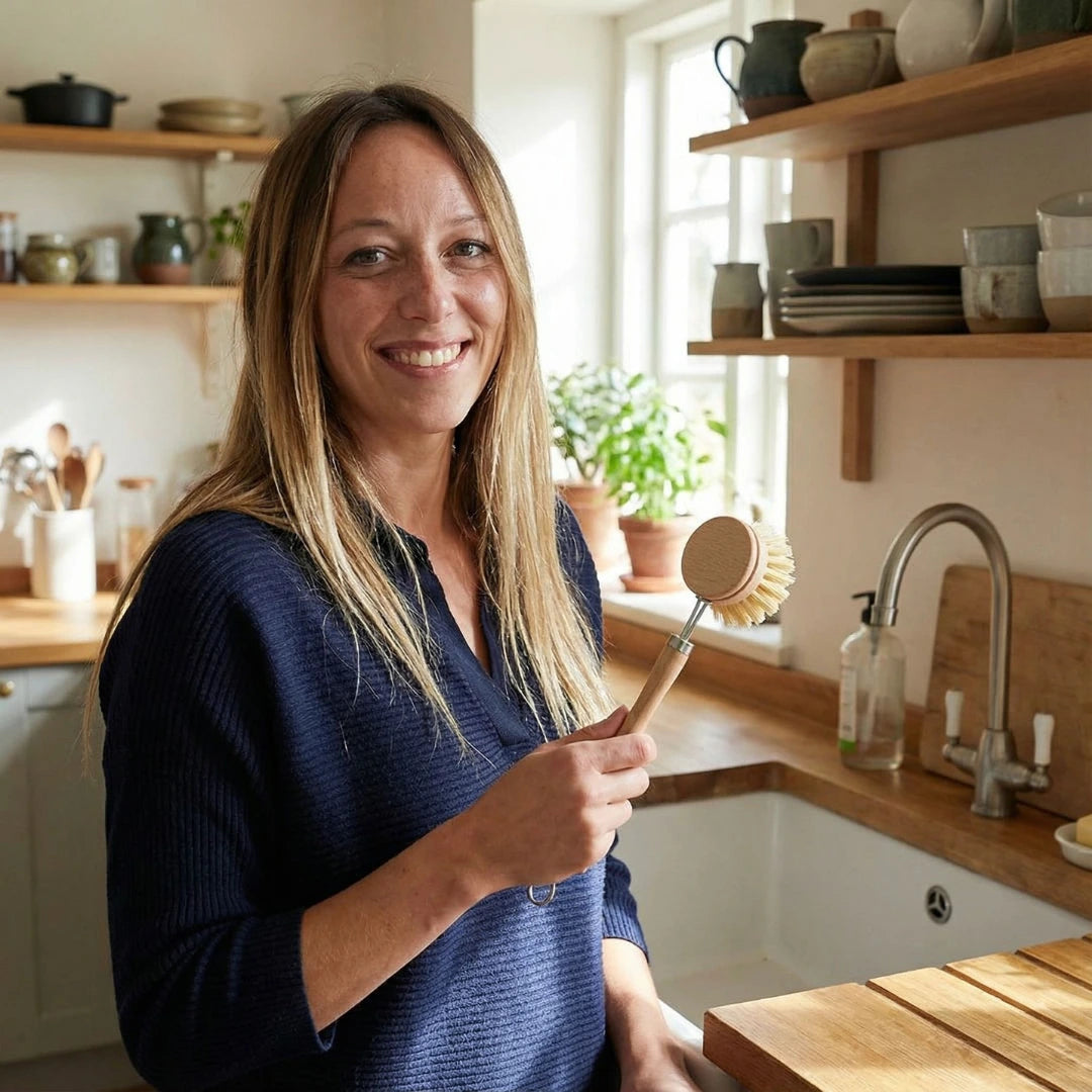 Borsten är tillverkad av bambu och naturfiberstrån av sisal eller kokos. Den är helt plastfri och fri från onödiga kemikalier – ett tryggare och mer naturligt val nära mat, disk och köksredskap. Skonsam för både dig och miljön.
